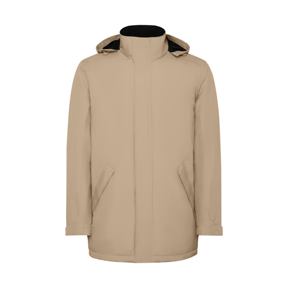 Αδιάβροχο μπουφάν παρκά με επένδυση. Ψηλός γιακάς με αναδιπλούμενη κουκούλα και κλείσιμο Velcro. Ασορτί κεντρικό φερμουάρ με κάλυμμα. Πλαϊνές τσέπες με φερμουάρ και σταθερό καπάκι. Εσωτερική τσέπη με κλείσιμο Velcro. Ρυθμιζόμενες μανσέτες με θηλιά ζώνης Velcro. Εσωτερική πρόσβαση για ενισχύσεις στην πλάτη και στο αριστερό στήθος.