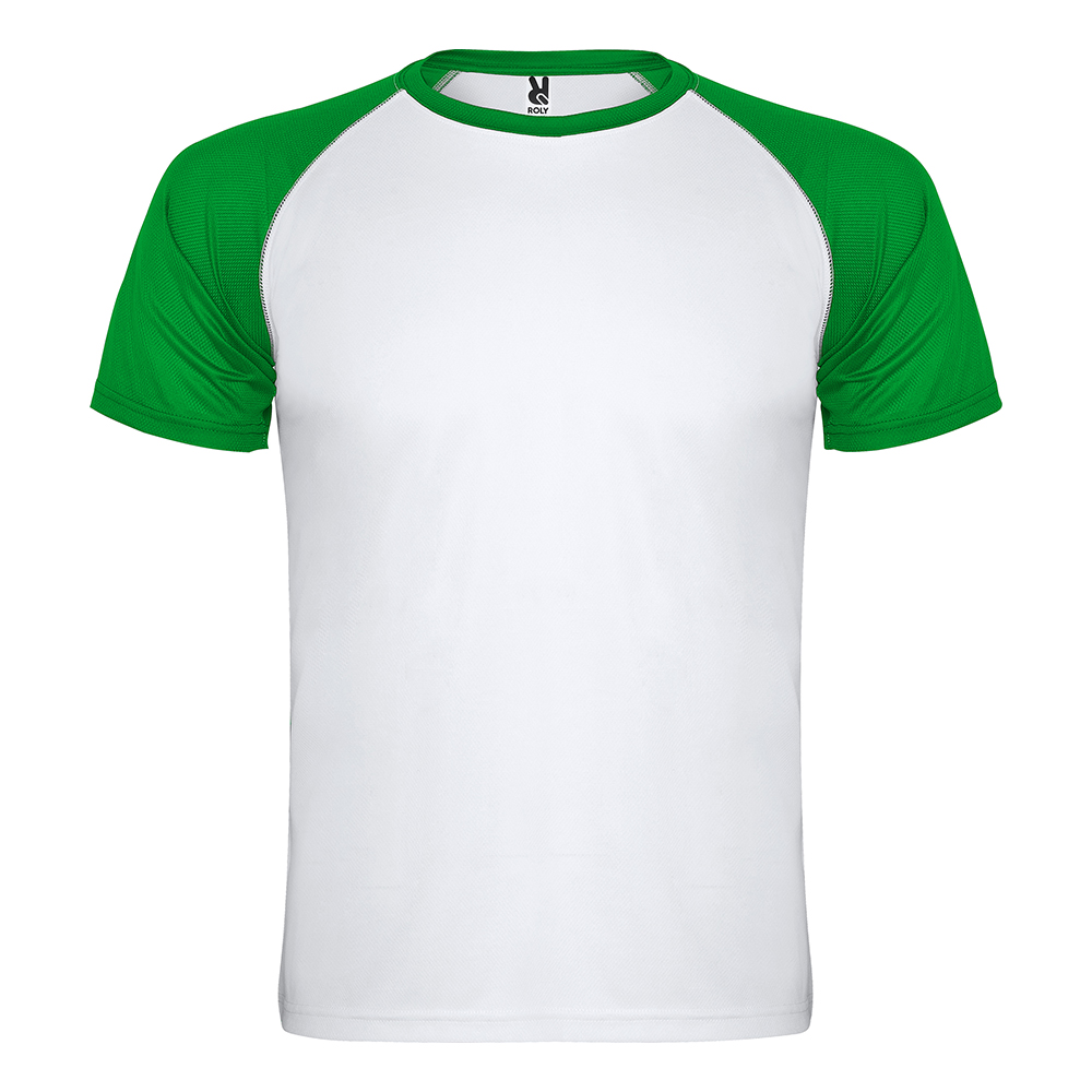 Κοντομάνικο, αθλητικό μπλουζάκι με διχρωμία σε ρεγκλάν μανίκια & στρογγυλή λαιμόκοψη με ενισχυτικά εσωτερικά γαζιά.